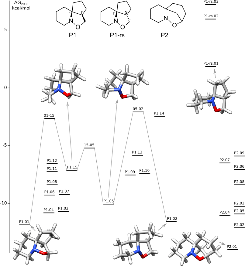 Conformational analysis of compound 7 and intramolecular 1,3-dipolar cycloaddition