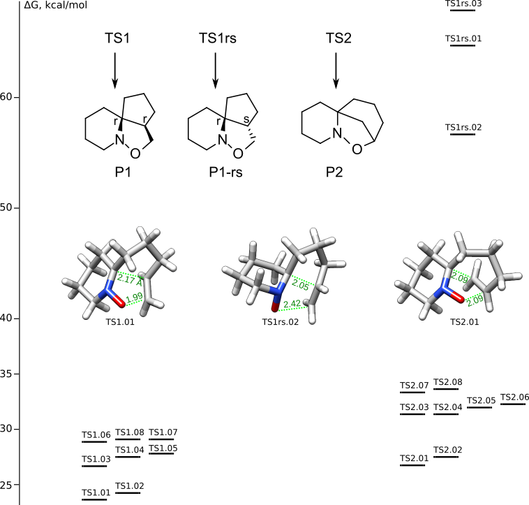 Transition states of intramolecular 1,3-dipolar cycloaddition